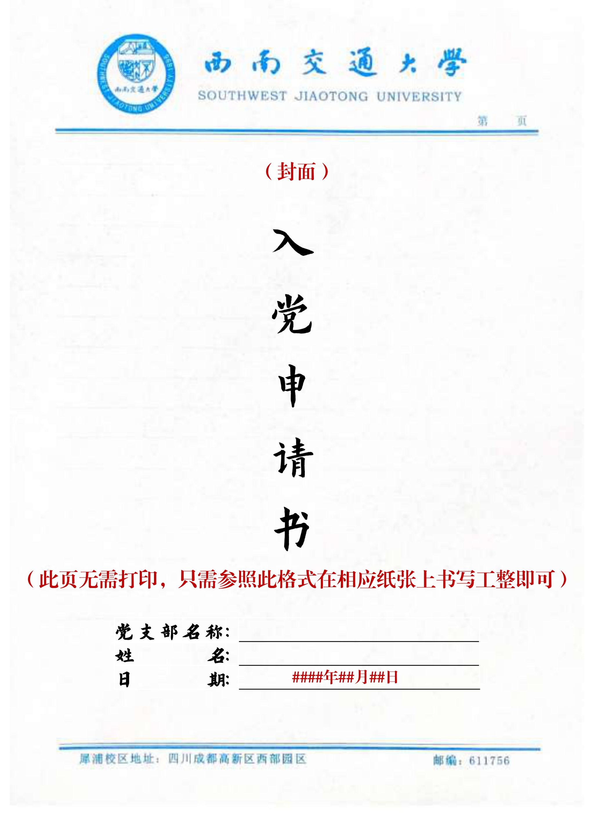 注:上述两种样式均可,但个人的同一套入党材料里所有封面的样式应保持一致。