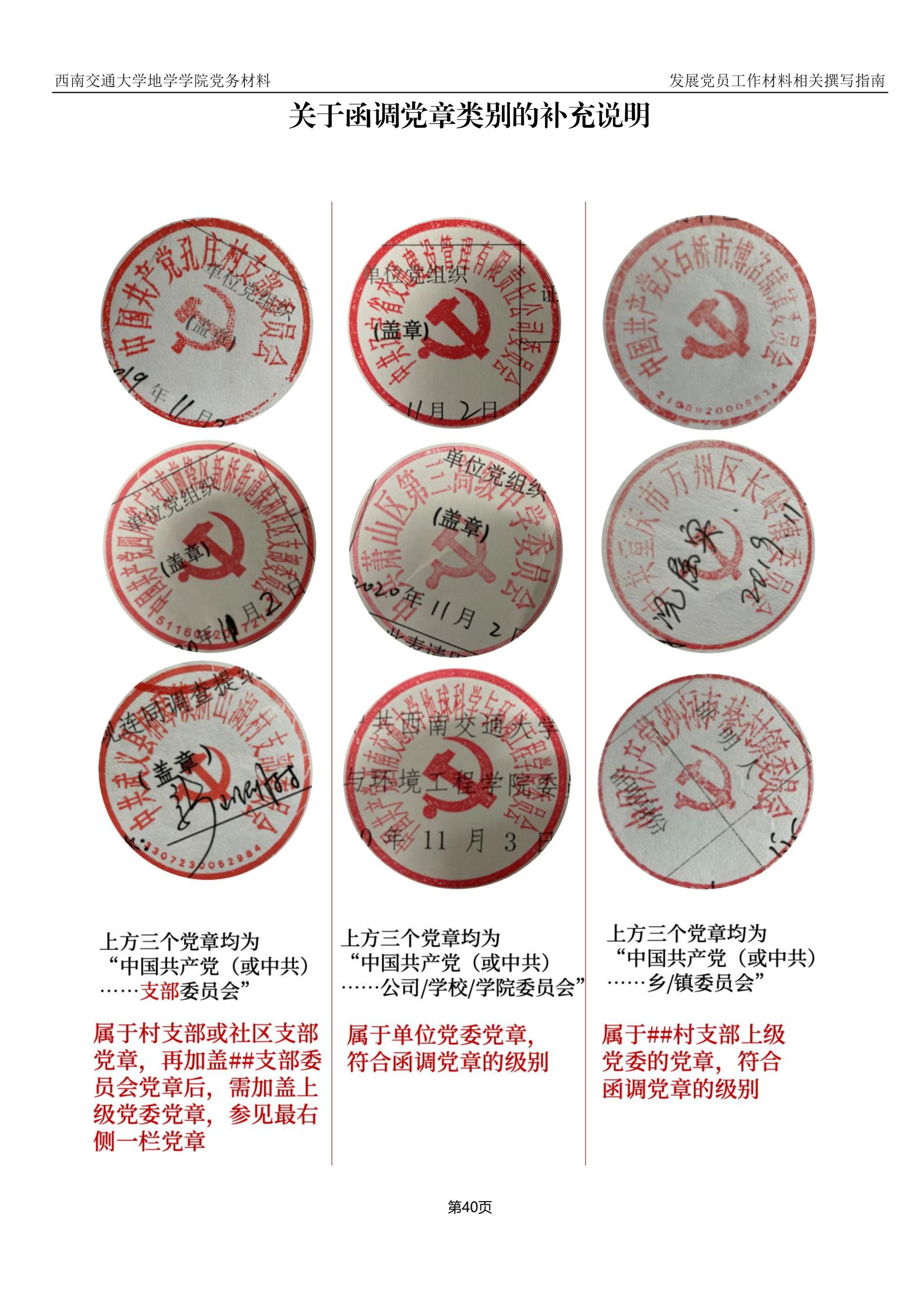 5.党支部书记收到寄回的函调材料后,可以直接拆封,但不得由发展对象本人拆封,如发展对象亲属误将函调材料寄给发展对象,应由党支书另为领取。函调材料拆封后,对照学院党委要求,党支书首先应核对函调材料是否齐全、基层党委公章是否规范,如不规范,请及时向原党组织反馈问题。