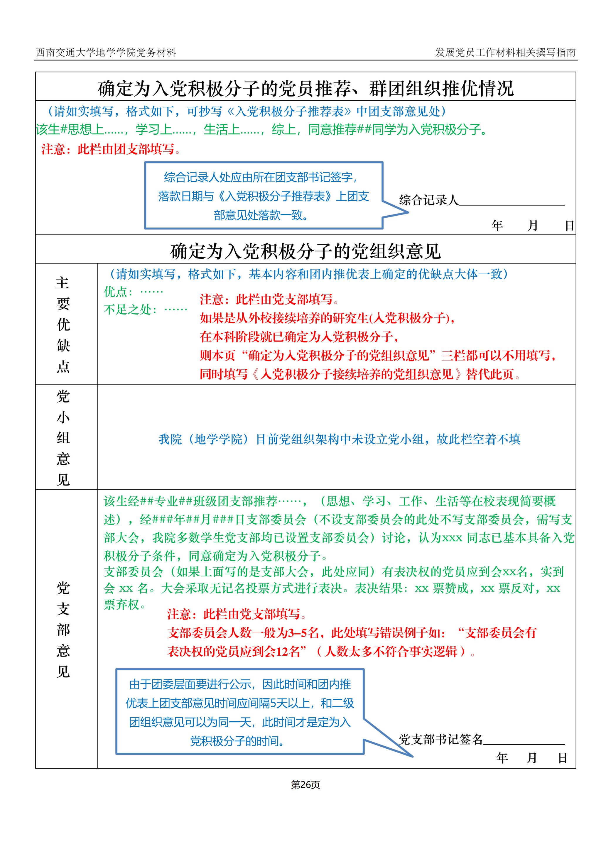 《入党积极分子接续培养的党组织意见》原表有地环版本与地学版本,见附件2、3,A4单面打印。