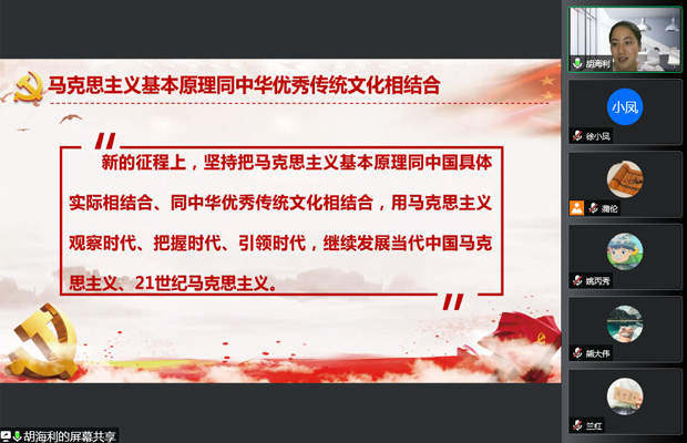 马克思主义学院博士研究生胡海利同志,为大家分享了题为《深学笃行“七一”重要讲话精神 努力在大有可为的新时代大有作为》的党史学习宣讲报告。胡海利同志结合“七一”重要讲话内容从中国共产党的领导、中国共产党人的政治本色、马克思主义基本原理同中华优秀传统文化相结合、中国式现代化新道路以及伟大建党精神五个方面的内容展开并做了详细介绍。