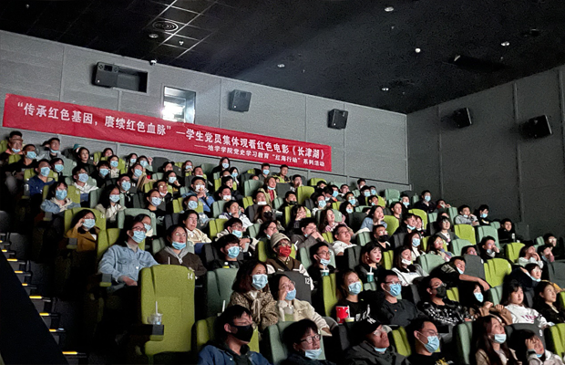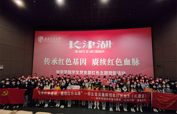 为学习贯彻习近平总书记在庆祝中国共产党成立100周年大会上的重要讲话精神,丰富党史学习教育形式,推动党史学习教育走深走实,号召全体学生党员传承红色基因,赓续红色血脉,2021年10月28日下午14:00,地学学院党委组织学生党员在C Plus影院集中观看爱国主义电影《长津湖》,活动由学院学生党建负责人文强老师主持,分管学生党建的史可心、刘礼钊老师以及全院学生党员代表150余人参加。
