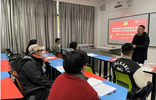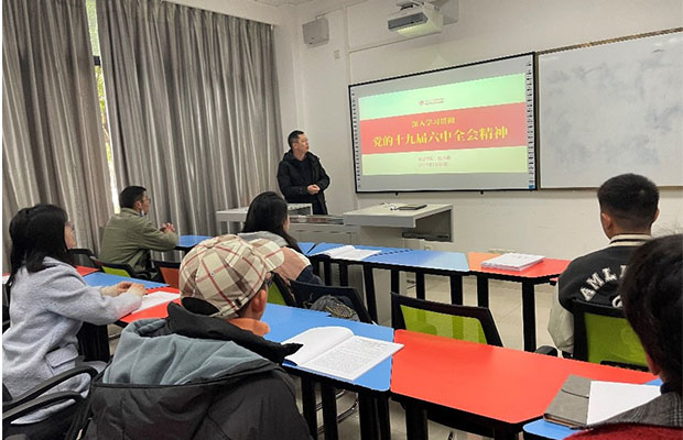 副院长张玉春教授于犀浦校区X4131教室为学生党员解读党的十九届六中全会精神,本次党课由博士环境党支部书记闵雪峰同志主持,博士环境党支部全体成员参加。