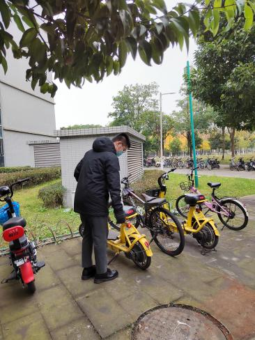 实践过程中,支部同志积极主动、相互帮助,对影响宿舍园区环境整洁、阻碍消防通道和救生通道等存在安全隐患的共享单车进行清理。经过近一小时的努力,对南区的共享单车摆放整理完毕。