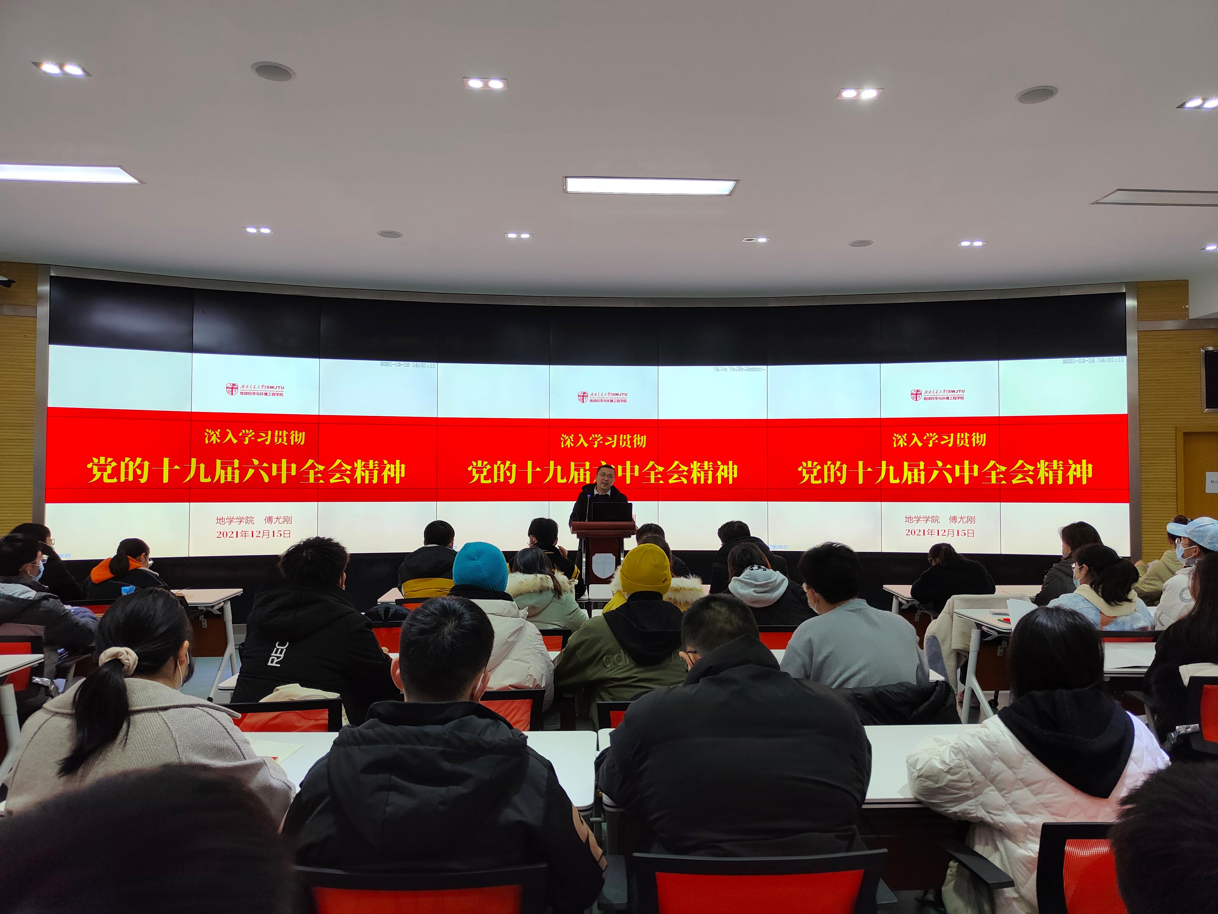本科测绘、地信、遥感党支部于X4243联合举行学习贯彻党的十九届六中全会精神专题党课。本次党课由学院党委副书记傅尤刚主讲,本科测绘党支部书记王文涛主持,本科测绘、地信、遥感党支部党员代表参加。