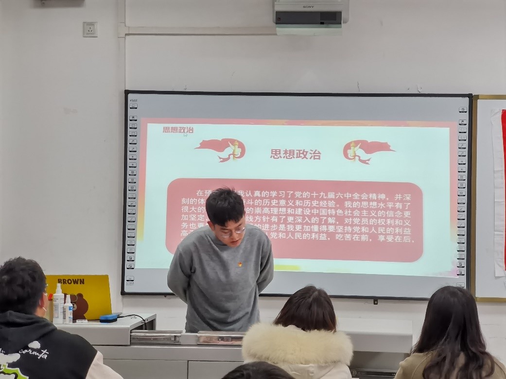 答辩议程第一项,由余君同志宣布大会的议题和拟转正同志的名单。随后预备党员通过PPT汇报自己在预备期间履行党员义务情况和如何在日常生活中发挥党员的先锋模范作用情况。每一位预备党员汇报完毕后,入党介绍人介绍预备党员在预备期间的教育和考察情况,提出是否同意按期转正的意见。经支委会介绍预备党员在预备期间的综合教育和考察情况后,所有参会的正式党员发表意见,本着公平、公正、公开的原则,进行无记名投票。由余君宣读支部大会决议后,候选人对支部决议进行表态。10位候选人均通过表决,成为本支部正式党员。