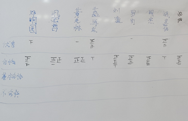 同志们一致认为通过开展批评与自我批评,进一步发现自己思想及工作中的优势与不足,为今后努力学习工作指明了方向。并且将激励全体党员进一步发挥先锋模范作用,对全面提升党员自身能力水平、增强党组织的向心力、凝聚力和战斗力起到了有力的推进作用。最后,与会正式党员开展民主评议投票,评议结果为3名党员评议优秀,9名同志评议合格,没有党员评议结果为基本合格或不合格。