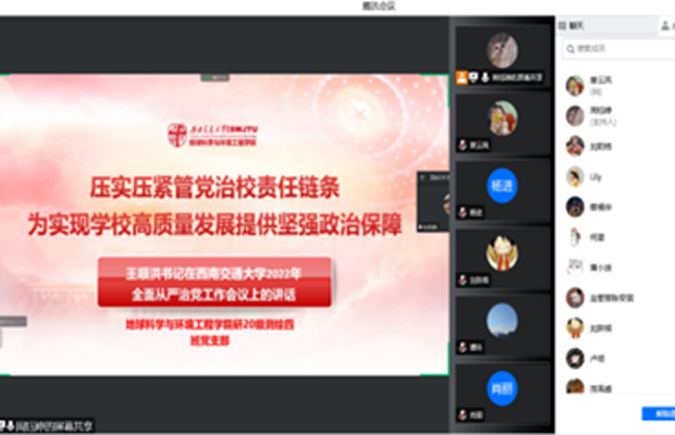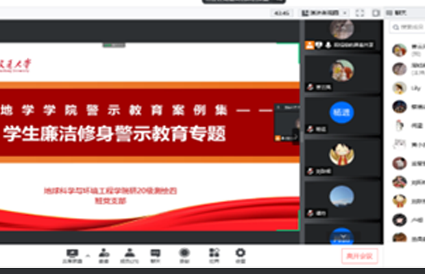 测绘四班以党支部为单位开展了“从严治党”暨高校警示案例专题学习会,此次学习会以腾讯会议的形式开展,由党支部书记周钰婷主持。