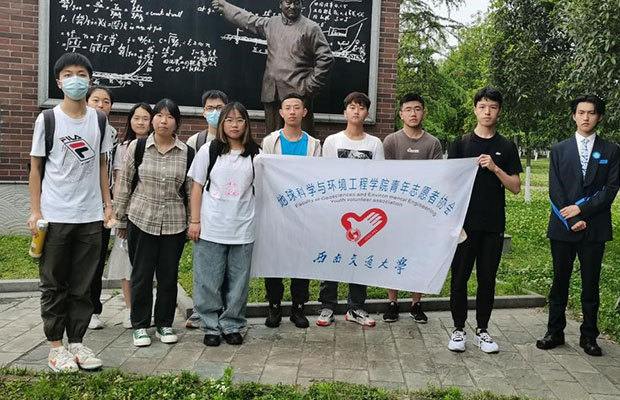 犀浦校区内开展“青春献礼二十大、强国有我新征程”主题志愿服务活动,党支部书记张雯清同志担任主持人,并邀请校园大使团担任嘉宾讲解雕塑历史。
