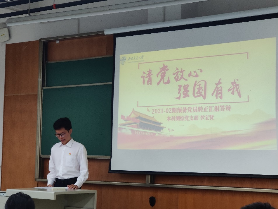 地球科学与环境工程学院本科测绘党支部于犀浦校区X4154教室召开预备党员转正大会,讨论关于钱琛、刘珈雯、陈月浩、葛紫腾、任炳屹、李宝贤、昌凡浩共七名预备党员的转正问题。本次会议由党支部书记王文涛主持,本科测绘党支部全体党员、预备党员参与此次会议。