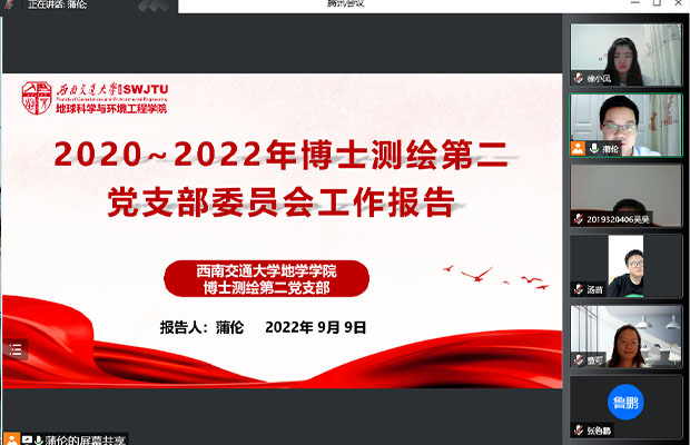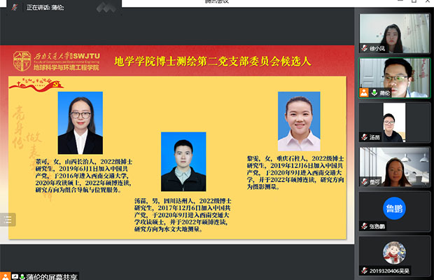 博士测绘第二党支部通过腾讯会议(ID:362 429 194)召开了支部委员换届选举大会,会议由支部书记蒲伦主持,支部全体成员参加。