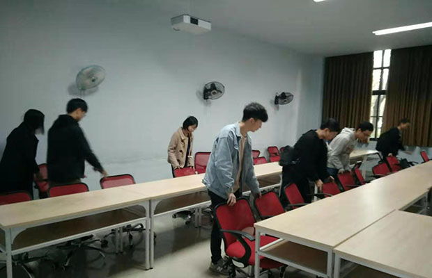 为让同学们在一个干净整洁的环境下学习,本次活动安排为打扫教室卫生、清洁黑板及摆放物品等。同学们集合完毕后,分组到九教9133、9134、9135、9136四个教室打扫卫生。同学们都情绪高涨,在不打扰自习同学的前提下开始进行打扫,认真地擦黑板、抹桌子、扫地、拖地,每个人都不怕脏、不怕累。