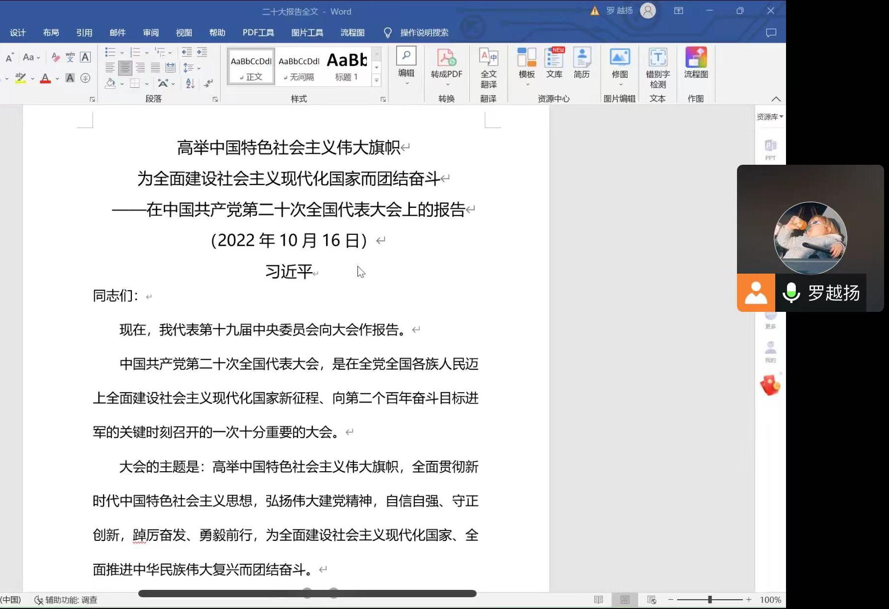 活动的开始由支部书记罗越扬带领各位党员同志认真学习、研读党的二十大报告内容,各位同志都以饱满的精神状态仔细聆听、认真记录,接着各位党员同志积极交流了本次学习的心得体会。何雪连同志说:党的二十大报告令人振奋、催人奋进。作为研究生的我们,在潜心科研的同时,也要不断从党的二十大报告中汲取精神力量和驱动源泉,将党的二十大报告所构建的宏伟蓝图转化为我们前行的灯塔;贾汉森同志表示要深刻领会报告精神,用党的最新理论成果指导实践、推动工作,进一步强化使命担当,以实际行动为国家贡献力量。