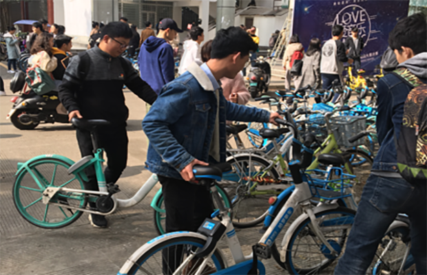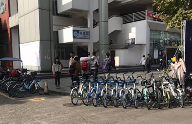 紧接着。我们进入本次活动的第二项即为师生做一件好事。这是我们党员的责任与义务。三个支部的同志一同到学校四食堂门口为同学们整理摆放好共享单车。为校园的整洁和同学们的便利奉献一份力量。