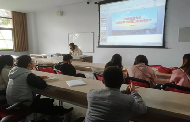 首先,由环境3班党支部书记胡代燕同志为大家讲解了我们学校在新中国成立70年来在中国交通事业上做出的贡献,比如我们学习所设计出的第二代磁悬浮列车,并且在2014年时就建成了全球首个真空管道高温超导磁悬浮列车试验平台。