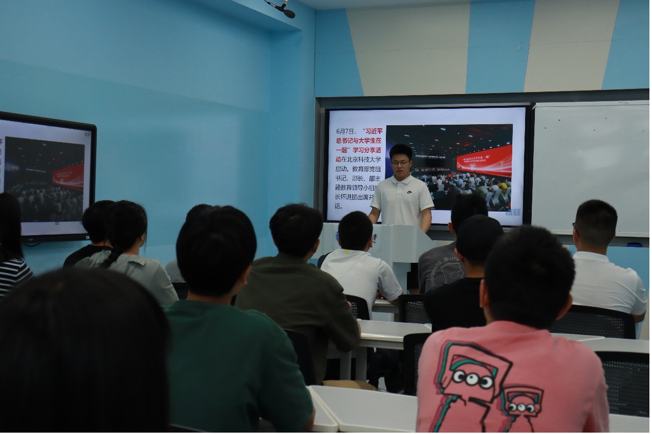 2023年6月14日上午,研22级测绘第三党支部在J4205教室顺利召开了“习近平总书记与大学生在一起”主题党日活动,本次活动旨在学习贯彻习近平新时代中国特色社会主义思想和二十大精神,深刻领悟习近平总书记在学习贯彻习近平新时代中国特色社会主义思想主题教育工作会议上的重要讲话精神。教育引导学生党员深刻领悟“两个确立”的决定意义,不断增强“四个意识”,坚定“四个自信”,做到“两个维护”。从而传递正能量,提升党员觉悟和支部凝聚力。支部全体党员及积极分子均参与本次活动。活动由党支部书记刘翔同志主持。