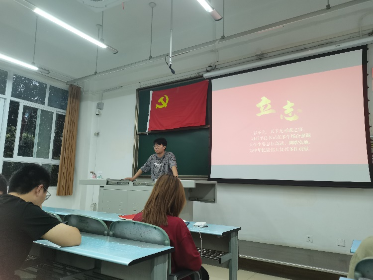 首先,弓赛同志带领大家回顾了“习近平总书记与大学生在一起”学习分享活动启动仪式,提到此次主题党日活动是要让大学生深刻把握新时代新使命,立足当今世界百年未有之大变局与新一轮科技革命产业变革加速演进的时代背景,引导大学生读懂中国、认识世界。针对习近平总书记对青年大学生的寄语,弓赛同志表明:“作为新时代青年,一定要志存高远、脚踏实地,不畏艰难险阻,勇担时代使命,将国家富强、民族复兴的使命融入到自己的理想中,为党、为祖国、为人民多做贡献。”