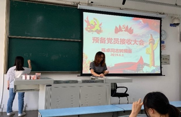 研17级环境一班党支部于犀浦校区X2334教室召开预备党员接收大会。会议讨论关于陈卓同志的接收为预备党员的问题。出席本次会议的有支部各党员同志。