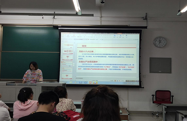 首先由胡代燕同志带领支部党员一起学习《序言》与《中共中央关于加强党的政治建设的意见》,胡代燕同志主要从《序言》的主要特点、主要任务、如何坚持和发展中国特色社会主义统筹推进“五位一体”总体布局、协调推进“四个全面”战略布局,推进国家治理体系和治理能力现代化,促进人的全面发展和社会全面进步,防范和应对各种风险挑战,实现“两个一百年”奋斗目标、实现中华民族伟大复兴的中国梦等方面展开讲解。接着她强调我们作为一名学生因坚定政治信仰,强化政治领导,提高政治能力,净化政治生态,实现全党团结统一、行动一致。努力培养斗争精神、增强斗争本领,使思想、能力、行动跟上党中央要求、跟上时代前进步伐、跟上事业发展需要。