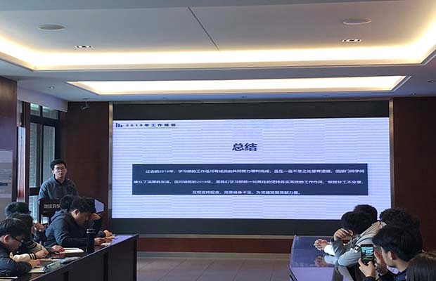 其后,各部门对过去一年的工作进行总结并对接下一年的工作安排进行讲述。在工作总结方面,各部门指出过去工作中出现的问题并提出相应的解决方案。就培养干事们的工作热情及相关能力欠缺问题,学习部提出应加强对部门成员技能培训,提高部员们办事的准确度和效率;就党建事务中心各部门间联系不够频繁关系不够密切问题,活动部推出打卡计划、读书分享会以及观看电影等活动,加强与其他各部门间的工作娱乐联系,传承发扬党建事务中心团结协作精神。在工作安排方面,除了对过去工作进行相应的调整外还提出一些创新的想法。宣传部联合党建事务中心各部门推出微信公众号“知行学堂”专栏,针对学院党员、积极分子,以“两会”、“党员应知应会”等为内容,进行相关考核。