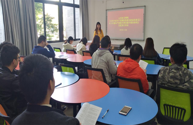 本15级第一党支部于3月28日下午2时在X4137教室召开“认真学习贯彻《中共中央关于加强党的政治建设的意见》和《中国共产党重大事项请示报告条例》”主题党日活动,在主题党日活动后,紧接着召开了应知应会知识学习活动,本次活动由党支部书记陈淑娴同志主持,部分党员同志因不可抗因素无法参与外,其余党员均准时到会。