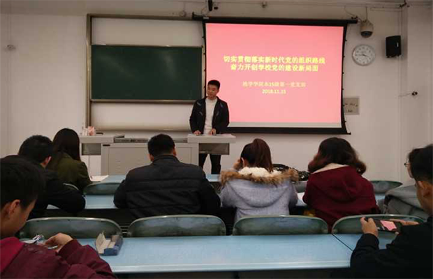 为认真学习领会习近平总书记于全国组织工作会议发表的重要讲话,2015级本科生第一党支部于11月15日下午4点在X2325教室开展“切实贯彻落实新时代党的组织路线,奋力开创学校党的建设新局面”主题党日活动,本次活动由党支部书记陈淑娴同志主持,孔晓威同志讲解,全体党员参与。