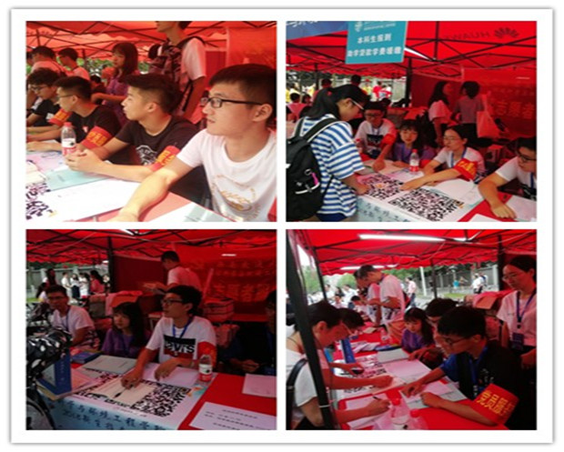 迎新开始,一切工作按着策划顺利进行。党员志愿服务队的同学们积极热情地为办理贷款的同学们提供绿色通道服务,并热情地为新生和家长解答他们的疑惑,与学弟学妹们畅聊对未来生活的希冀与打算。在遇到需要帮助带路或搬运行李的新生,党员志愿服务队的同学们也积极帮忙并协助他们安排好住宿,让学弟学妹们感受如家般的温暖和关心,为2018级新同学今后的大学生活打下良好基础。