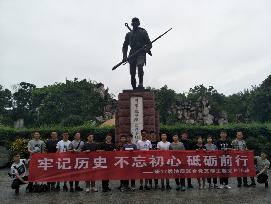 6月15日上午,研17级地质三班党支部联合研17级地质一、二班党支部全体党员以及积极分子前往成都市人民公园开展了“不忘初心争创一流”主题党日活动,活动由三个党支部书记袁彬、何江、李志浩共同负责。 本次活动的主题是“牢记历史,不忘初心,砥砺前行”。依托成都市人民公园的红色资源,缅怀革命先驱和学习先进典型,寻红色印记铭党恩,诠释青年学生振兴中华的使命,引导党员干部在传统洗礼中坚定信念。
