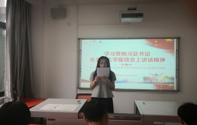 接下来,支部书记袁冰雪同志带领大家一起学习了《习近平总书记在北京大学考察时的重要讲话精神》,习近平总书记在北大师生座谈会上的讲话阐明了新时代中国高等教育的奋斗方向与发展路径。今后,学校和支部将继续抓住培育社会主义建设者和接班人根本任务,结合马克思诞辰200周年的契机,扎实做好青年思想引领工作,引导青年学子为学校双一流建设贡献青春力量,在育人实践中践行马克思主义是中国大学最鲜亮的底色。各位党员也纷纷表示,要深入学习领会习近平总书记重要讲话精神,不辱时代使命,不负人民期望,扎根人民,奉献国家,为实现中华民族的伟大复兴贡献自己的力量。