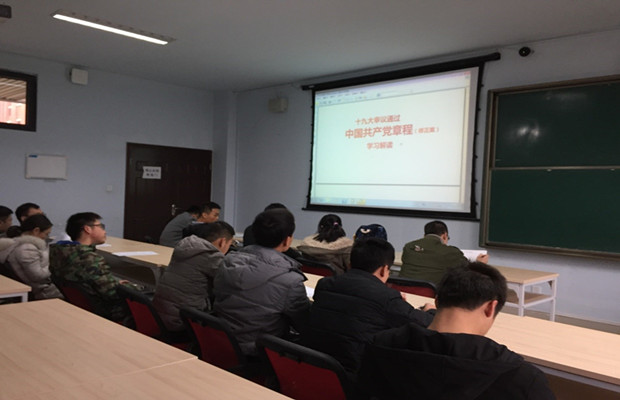 犀浦校区X9237教室举行。十九大以来,党支部一直重视理论知识的学习,本次活动旨在带领大家深入学习《中国共产党章程》修订,提升自己的党的基本理论知识水平。