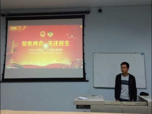 之后王宏胜同学向大家介绍了“两会”精神,今年三月,“两会”在北京人民大会堂胜利召开。作为一名研究生共产党员,了解并积极参加国家大事的讨论是应该具备的基本素质。改革和环境治理作为今年两会的热点话题,也引起了同学们的积极讨论。