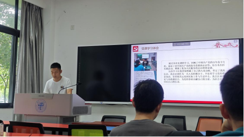 会上,刘从越同学也进行了自我陈述,他回顾了自己的入党动机、对党的认识和体会、思想政治理论学习情况、道德品行与执行纪律情况、研究生期间的作用发挥情况。他表示:“通过党课学习,我了解了党的历史,深化了对党的认识,坚定了信仰,提升了责任感,收获了宝贵的精神财富。在党课的小组活动中,我通过深入交流与讨论,增强了团队协作意识,深化了对党的理论和政策的理解。定期的思想汇报让我能够更好地梳理自己的思绪和成长,及时向组织反映自己的想法和问题,同时也为我的思想进步提供了监督和指导。在入党积极分子培养期间,适逢党的二十大召开,使我深刻感受到党的坚定信念和为民情怀,同时也意识到作为新时代青年的自己身上肩负的重要责任和使命。这次大会不仅让我对党的理论和政策有了更深入的了解,也激励我在今后的工作和学习中更加努力,为实现党和人民的目标和愿景而不懈奋斗。”