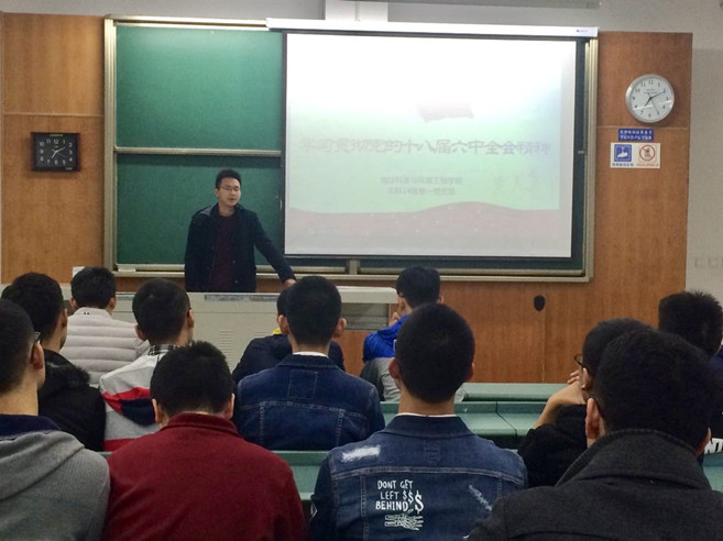 本科14级第一党支部在X4154教室召开了学习会议,专题学习贯彻党的十八届六中全会精神。会议由党支部书记杨都强主讲,组织委员胡鑫主持,支部全体党员、预备党员、入党积极分子参加了此次会议。