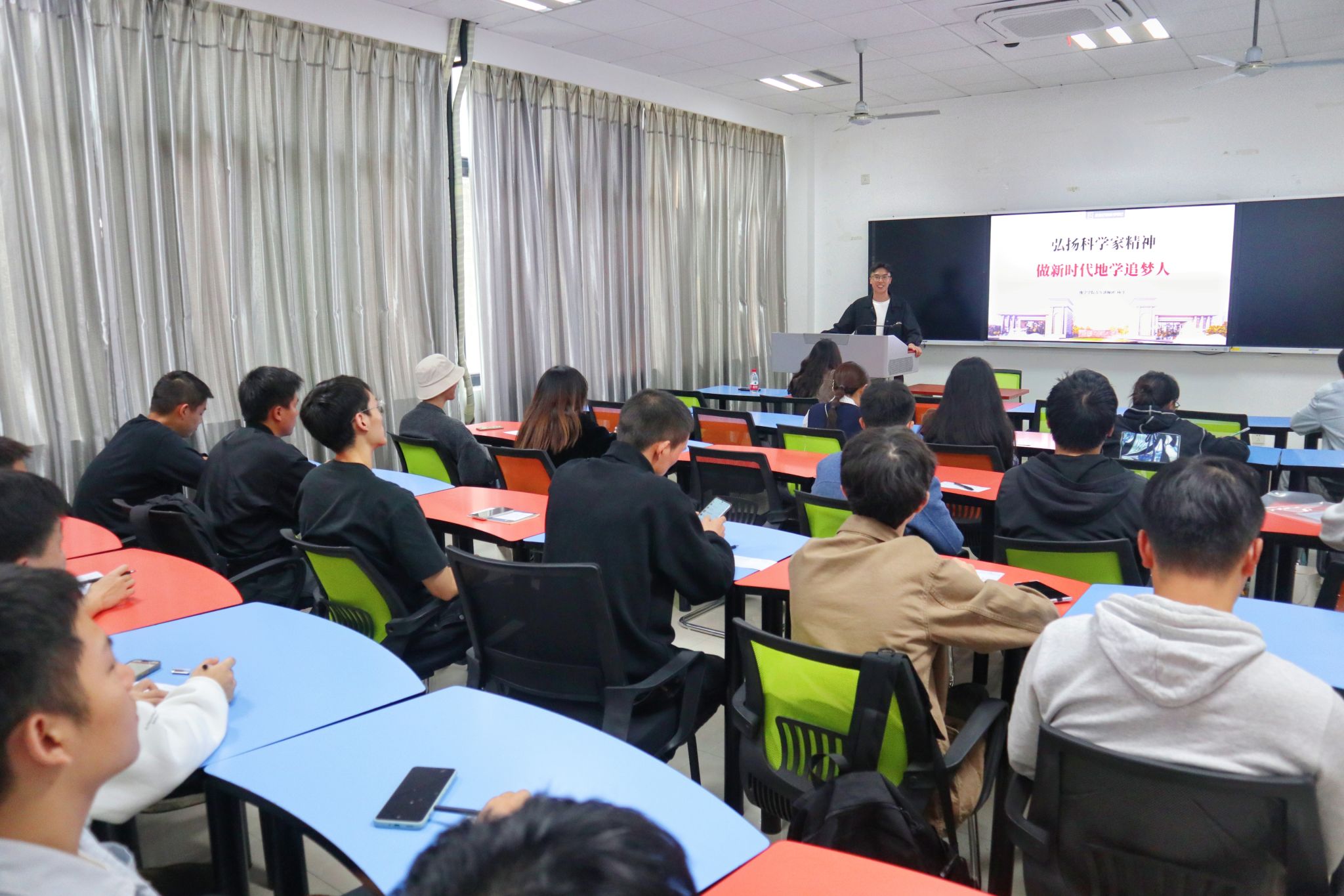 青年讲师团成员杨洋同志为研23级地质第二党支部的成员们带来了一场生动的专题党课。杨洋同志围绕“承先辈之志,扬地质精神”的主题,深情讲述了地质学家李四光先生的光辉事迹和崇高精神。