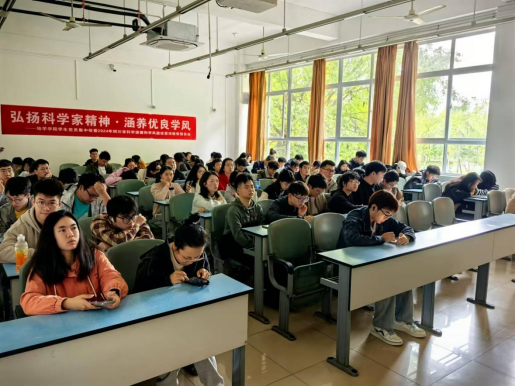 2024年10月31日14:00,犀浦校区和九里校区组织学生,在X2221、X2223、X2224、X2225教室集中观看了2024年四川省科学道德和学风建设宣讲教育报告会。参与集中观看的成员包括犀浦校区的预备党员培训班学员、发展对象党课班学员、积极分子党课班学员、学生正式党员以及学生入党积极分子,还有九里校区的研究生新生。