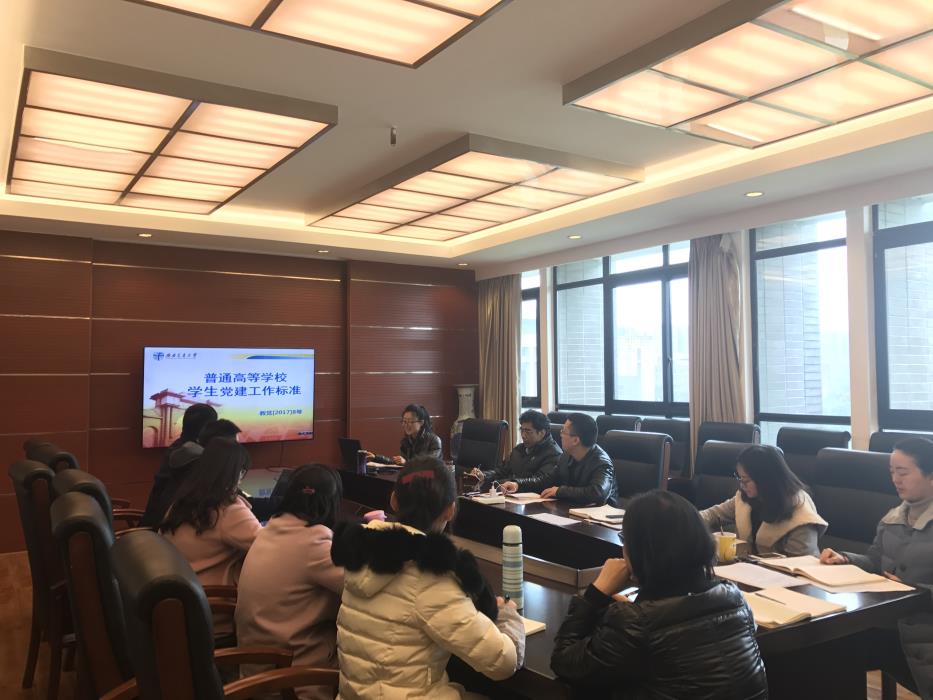 学工组党支部在犀浦校区4531会议室召开支部会议,集体学习中共教育部党组近日印发的《普通高等学校学生党建工作标准》。学工组全体成员参加会议,学院党委书记王齐荣、副书记傅尤刚出席本次学习会。