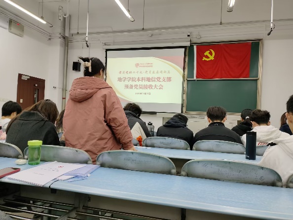 首先,黄龄诺等4名发展对象宣读入党志愿书,汇报自己对党的认识、入党动机,并向党组织汇报在积极分子和发展对象期间履行的义务以及在日常生活中发挥的先锋模范作用。接着入党介绍人分别从思想、学习、工作以及生活等方面介绍申请人的情况,表明是否同意发展其入党的意见。