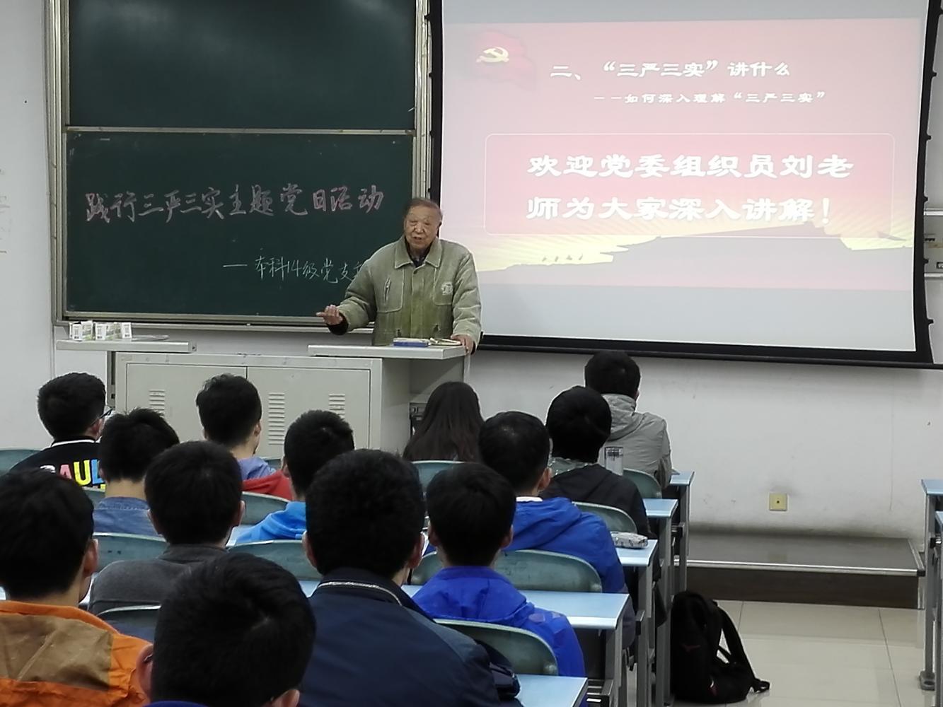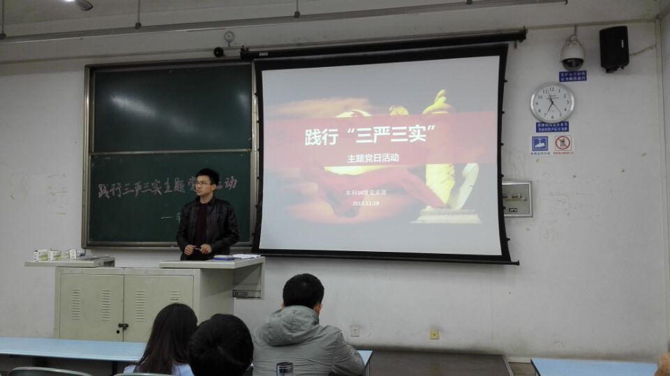 1124日晚上,2014级党支部在X2323教室开展实践”三严三实“主题党日活动。党支部组织员刘冠军老师及支部全体成员参加本次会议,党支部书记杨都强老师主持会议。