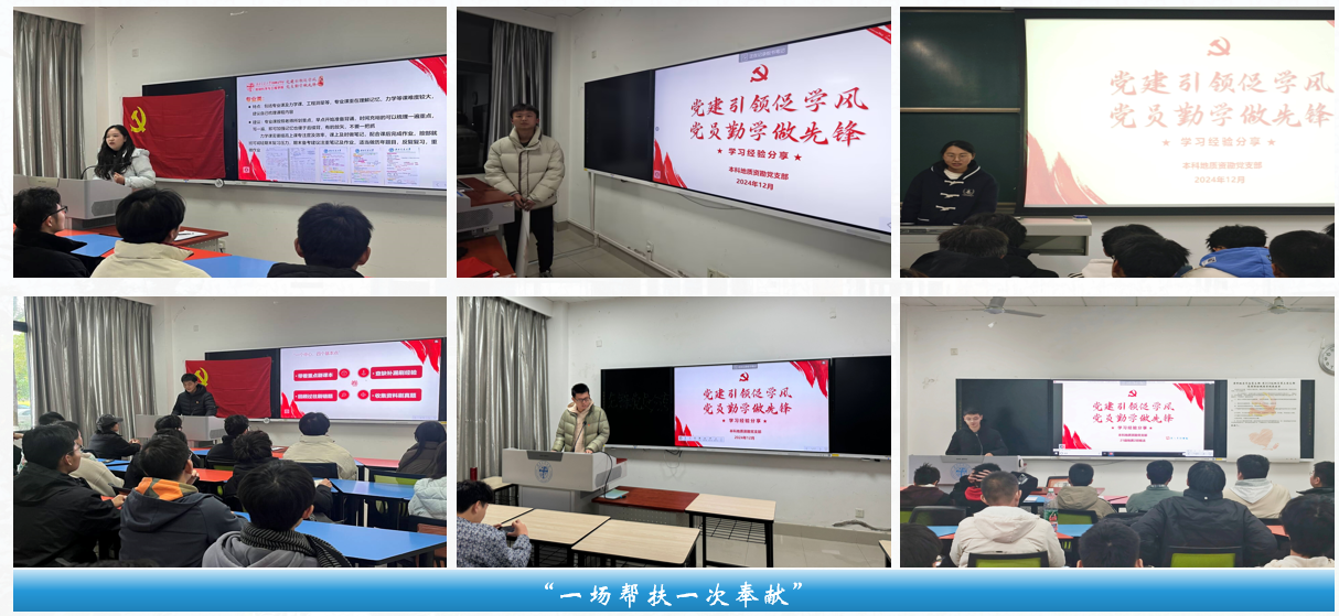 为强化专业引领,党支部发挥核心引领作用,积极搭建学术交流平台,促进地质工程与资源勘查工程专业知识的传承与深化。党支部优秀党员凭借其在专业领域的收获与经验,分享专业课程备考方法与复习策略,开展现场互动,为支部成员答疑解惑。经验分享,方法交流,优秀党员发挥先锋模范作用,助力支部成员个人成长,促进支部整发展。