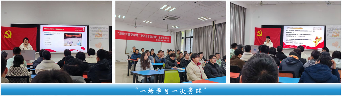 为深化党团共建,党支部积极发挥战斗堡垒作用,主动对接2024级地质资勘专业新生团支部,构建起一对一帮扶小组,架起经验传承与智慧共享的桥梁。支部中的优秀党员代表,与新生团支部成员深入交流,分享学习心得与备考策略,强调考试纪律规定,共同签订考试诚信承诺书。以党带团、以老带新,党支部积极引领学风建设,党团携手共同营造了积极向上、诚信守纪的良好学习氛围。