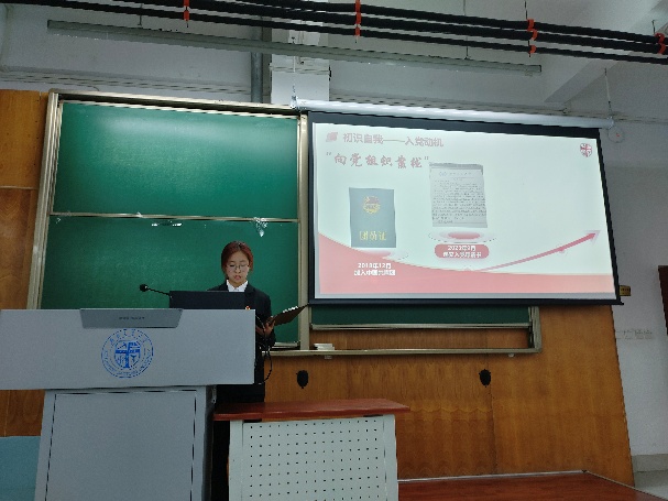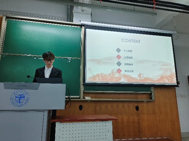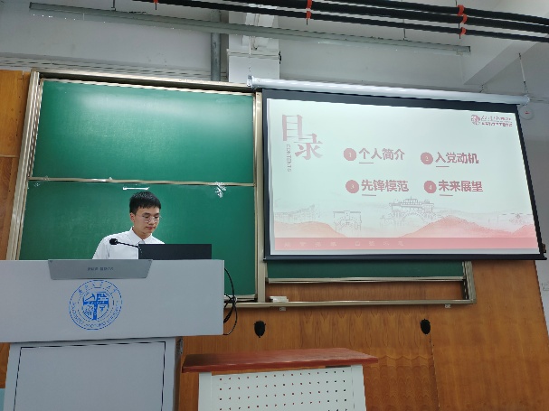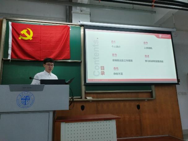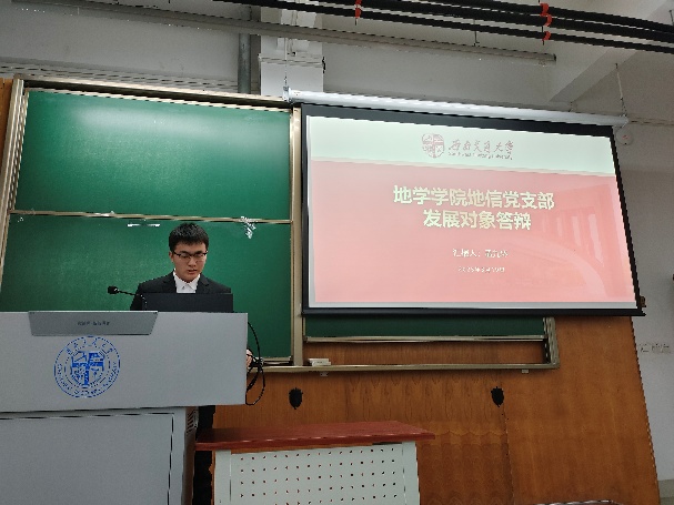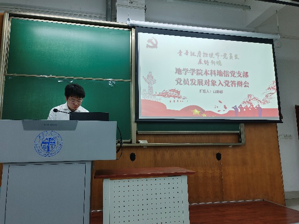 会议进行第二项,由杨宏宇等12位同志依序上台进行答辩,在答辩过程中,入党积极分子依次汇报自己对党的认识、入党动机,以及在思想政治、道德品行、执行纪律等方面的具体表现情况,包括在思想、学习、工作以及生活方面的成长。同时,他们还接受了在场同志以及指导老师的提问。