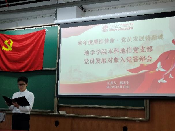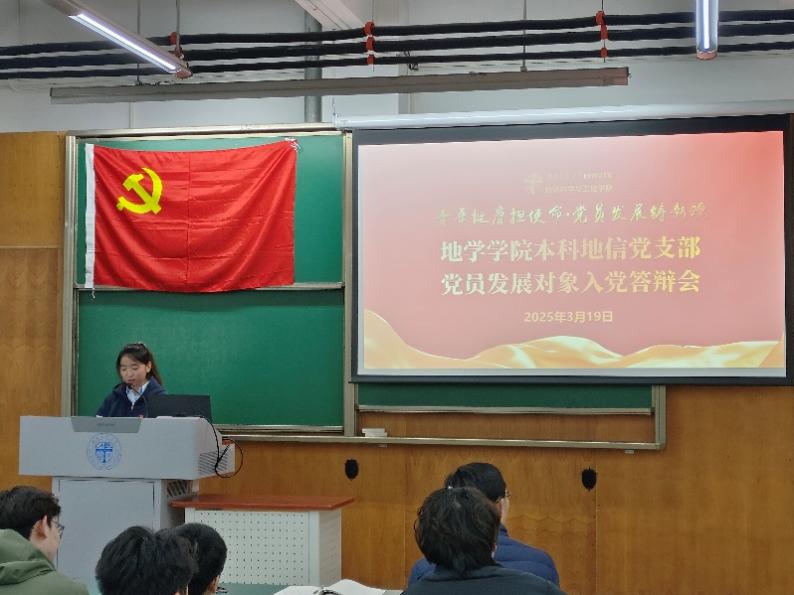为做好2025年发展党员工作,切实提高党员发展质量,本科地信党支部于2025年3月19日19:30在犀浦校区X4152开展发展对象答辩大会,大会由党支部书记候王悦同志主持,蘑菇视频