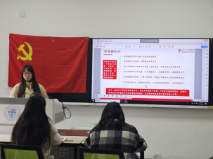 支部指导老师杨冰倩进行指导讲话,主要包括两方面,一方面是勉励支部活动形式创新并且鼓励全体党员积极参加志愿活动,另一方面是欢迎各位非党员同志积极向党组织靠拢,共同进步。