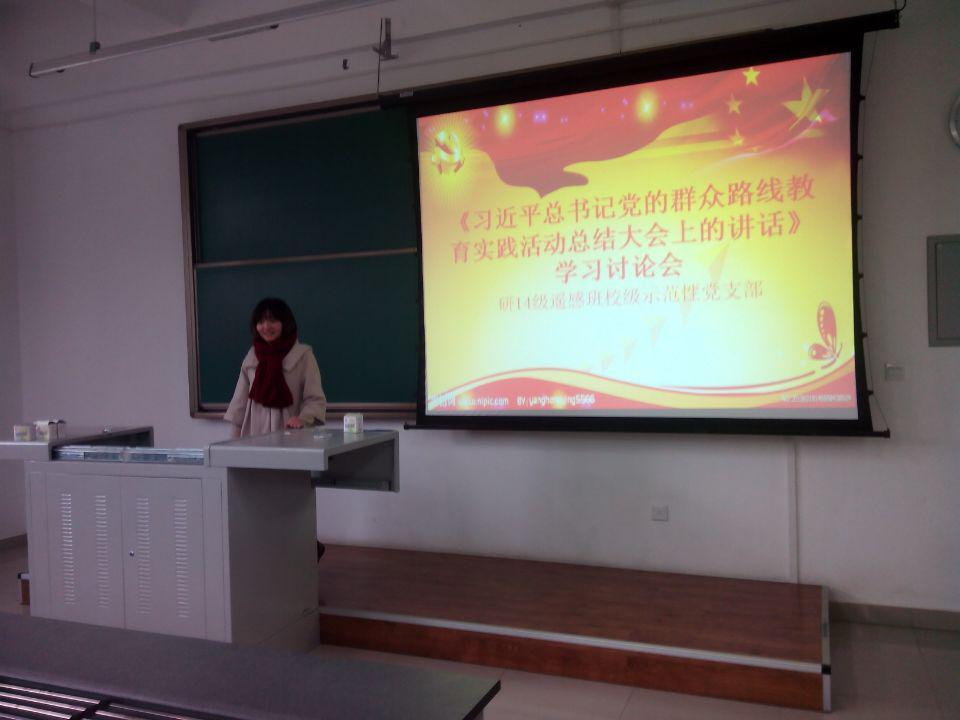 本支部保持与时俱进的态度,通过十八届四中全会学习讨论会,学习党的最先进理论、最先进思想。而通过《习近平总书记党的群众路线教育实践活动总结大会上的讲话》的学习讨论,我们首先回顾了在过去一年里所做的努力以及所取得的成果,此外,本支部将以往的经验结合到示范性党支部创建活动中,为今后的活动实施提供参考。