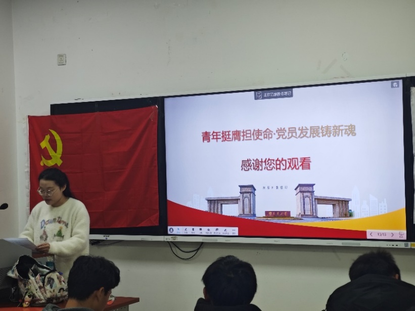 首先,由党支部书记王睿同志向支部同志们介绍三位入党积极分子的基本情况。随后,三位入党积极分子依次进行PPT汇报答辩,从入党动机、思想政治、道德品行作用发挥执行纪律等方面对自己在入党积极分子期间的表现进行了总结与反思