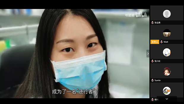 吕继超为大家播放了视频《逆行者》,展现了这场抗疫站中许许多多临危不惧、倾情奉献的普通人的感人故事。学习结束后,与会者轮流发言,分享了近日生活学习的感悟、家乡疫情防控情况和参与社区工作志愿服务的经历。让我辈不负韶华,齐头并进,待到春暖花开、山河无恙。