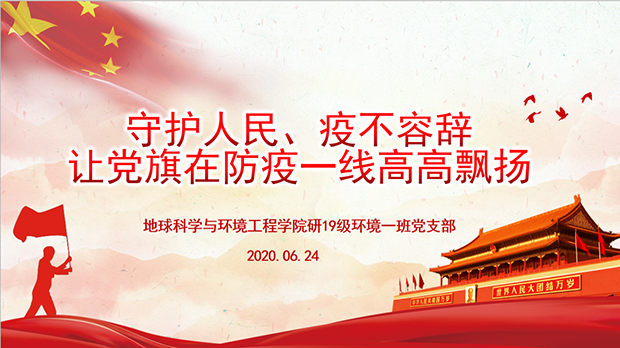 为贯彻落实党中央关于常态化疫情防控的决策部署,充分发挥基层党组织战斗堡垒作用和师生党员先锋模范作用,让党旗始终高高飘扬在疫情防控、返校复学、事业发展全过程全方位。研19级环境一班党支部于2020年6月24日利用腾讯会议平台召开了“四个一”行动中“一次专题微党课”主题会议。本次主题党日活动以专题学习为主要形式,共分为三个部分,分别为让党旗飘扬在抗疫一线、疫情大考彰显制度优势、全球抗疫中的中国担当。微党课由赵聪同志主讲。
