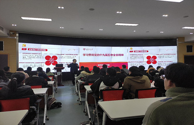 党委副书记傅尤刚为本18级党支部讲述了以“学习贯彻党的十九届五中全会精神”为主题的党课。本次党课本18级党支部成员参与其中,认真领会了党的十九届三中全会精神的内容。