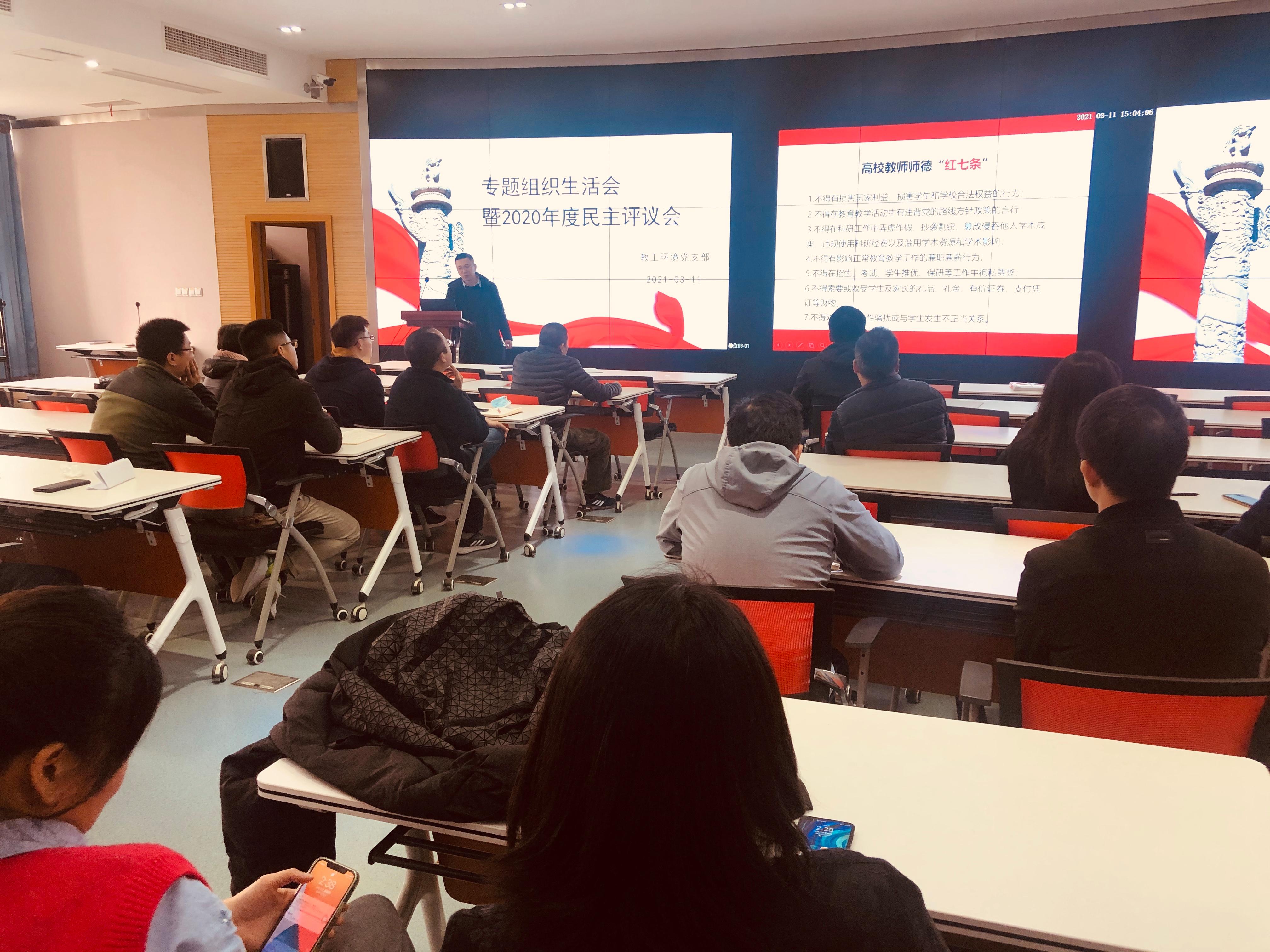教工环境党支部的专题组组生活会,围绕全面从严治党工作、组织生活会的开展、纪律教育,为教工环境党支部上了一节关于全面从严治党和党风廉政建设的专题党课。