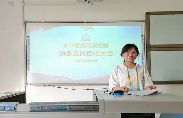 本次“预备党员接收大会”为本18级第二党支部注入了新鲜活力,壮大了本支部的力量,这既是一次纳新的会议,又是一次新老党员接收再教育的会议。在党支部的带领下,本支部全体成员将坚定信念,不忘初心,坚持用自身的实践行动起到先锋模范作用。