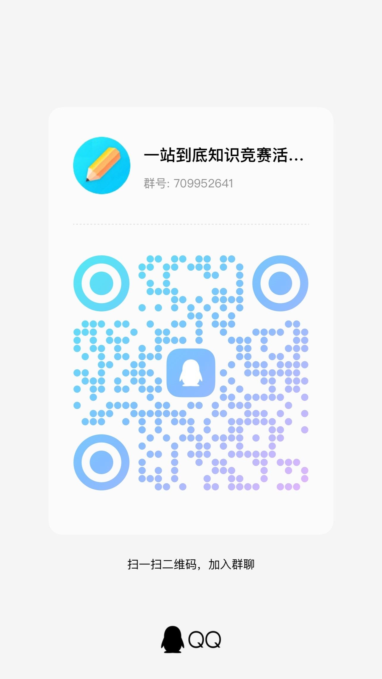 1. 活动设置参赛选手QQ答疑群(群号:709952641),解答同学们的疑惑并发布比赛相关最新通知,期待同学们的积极参与!